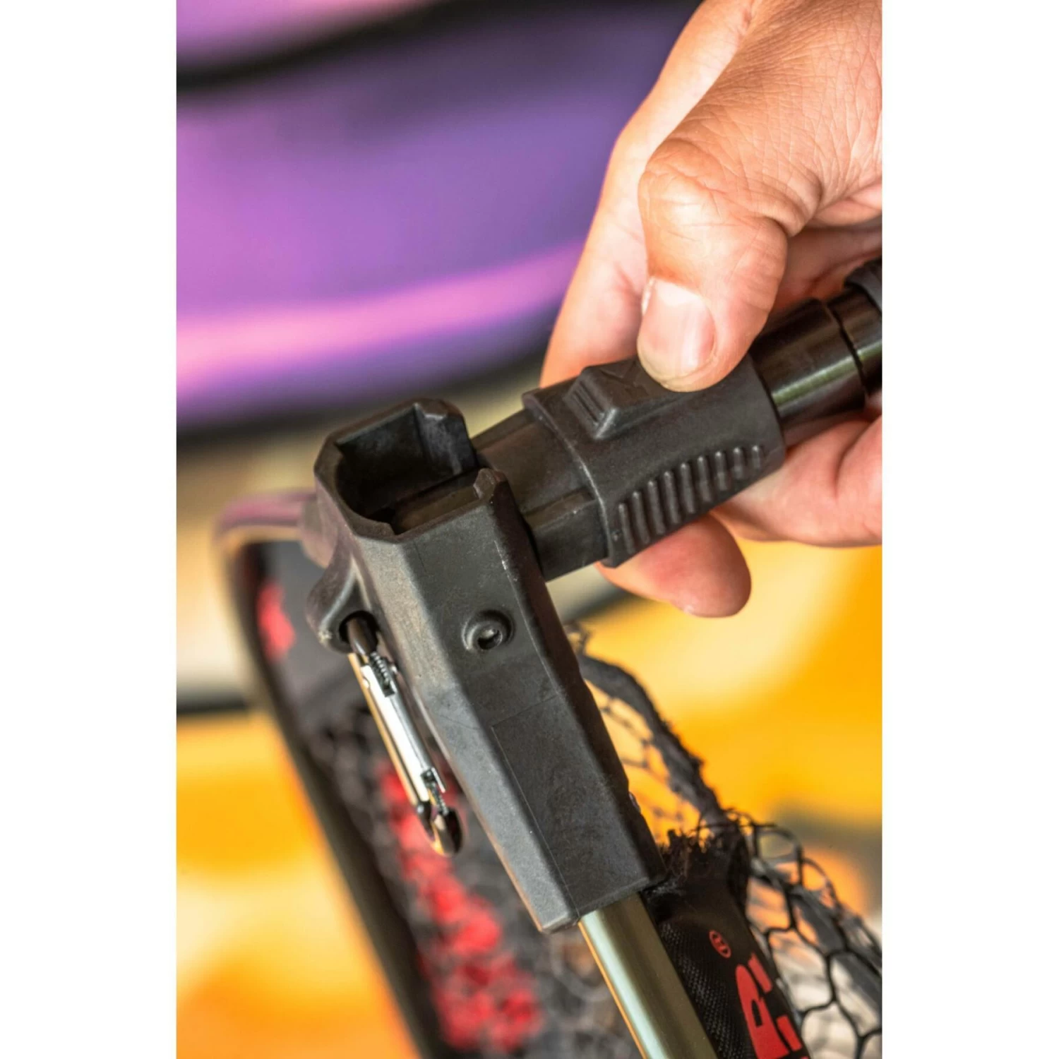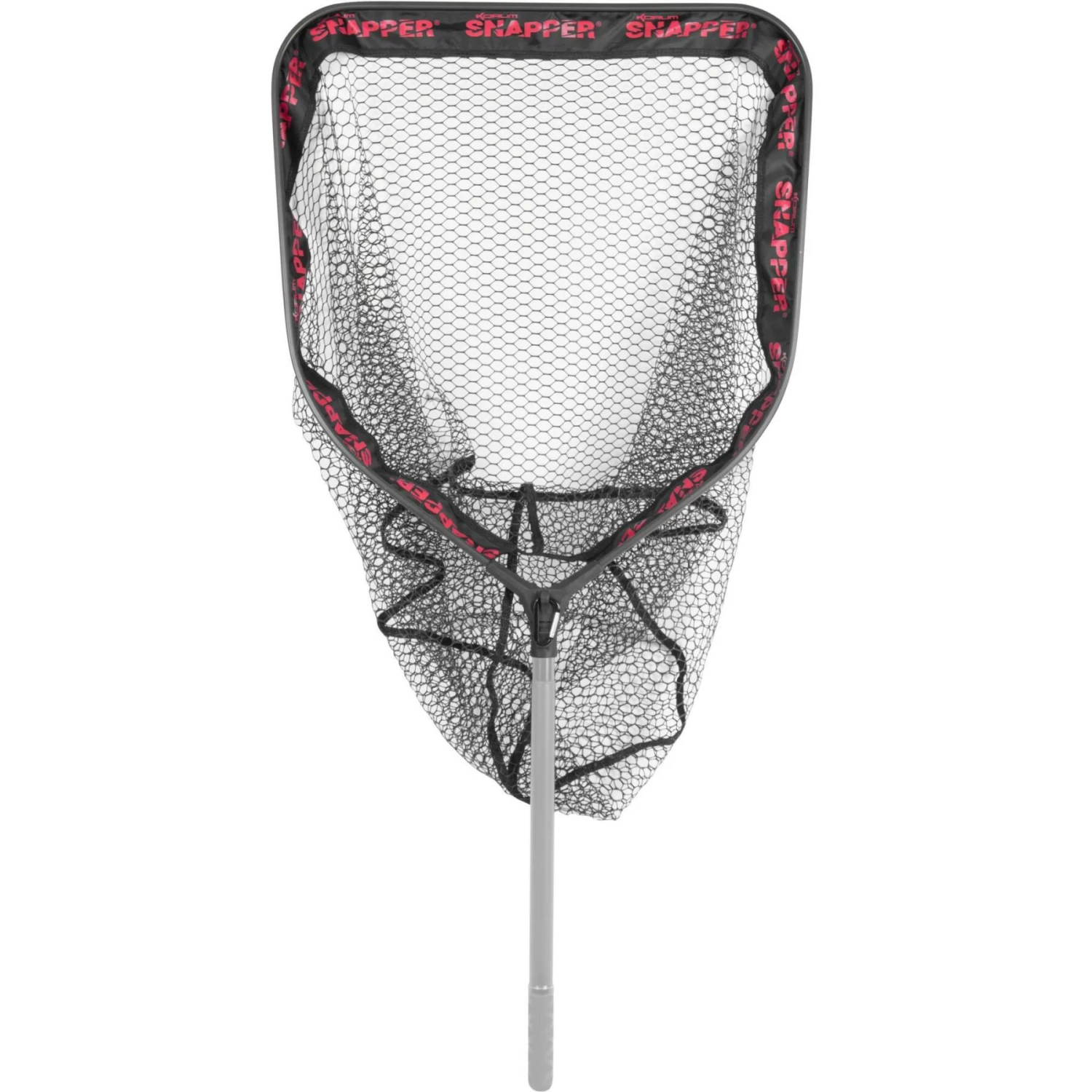 SNAPPER FAST NET – 22 “The Snapper Fast Net is equipped with our own UK designed net locking mechanism that allows you to move the net into the catching position with one hand. The spring loaded mechanism can be opened or closed using just your thumb. The net block itself also features a point attachment for carabiners or magnetic ties. The Fast Net Head landing net head can be used with any landing net handle with a 3/8” BSF universal thread. 15mm black rubber mesh suitable for fish