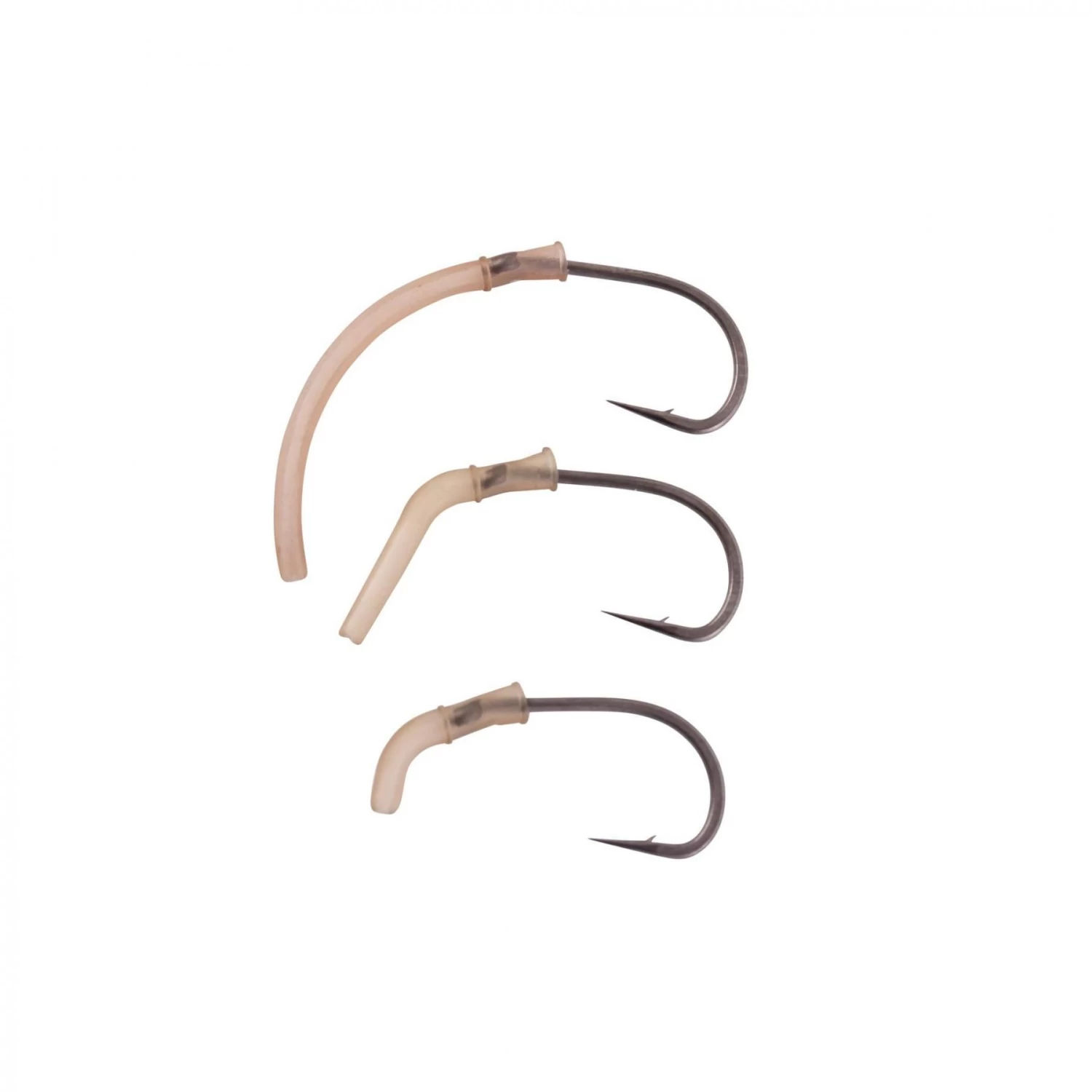 Designed to extend the hook on hair mounts so that it rotates more effectively inside the fish’s mouth. Available in three sizes to suit different platform styles. Each package comes in two colors. Pre-molded so you don’t need to use a heat shrink tube. Uncurved: Similar to the original Korum anti-ejection sleeve. Good for Withy platforms, anti-ejection barbers and carp platforms. Use with a size 10-4 hook.